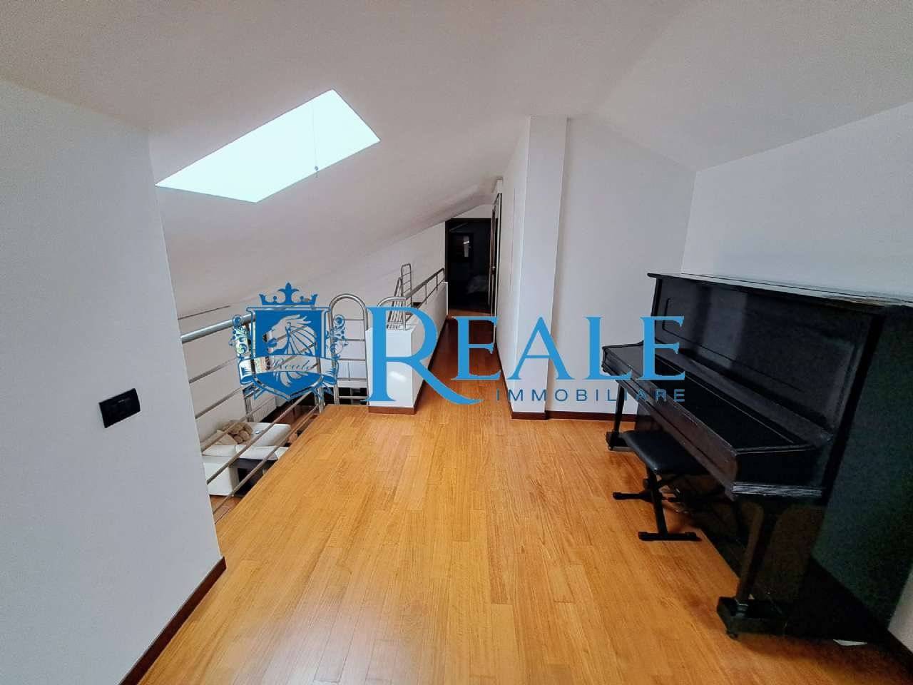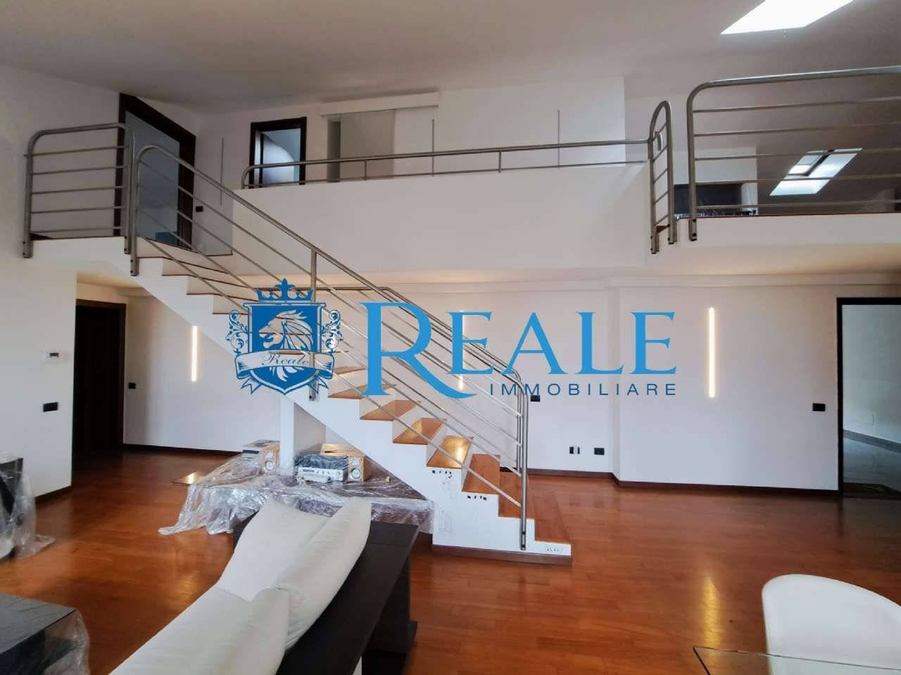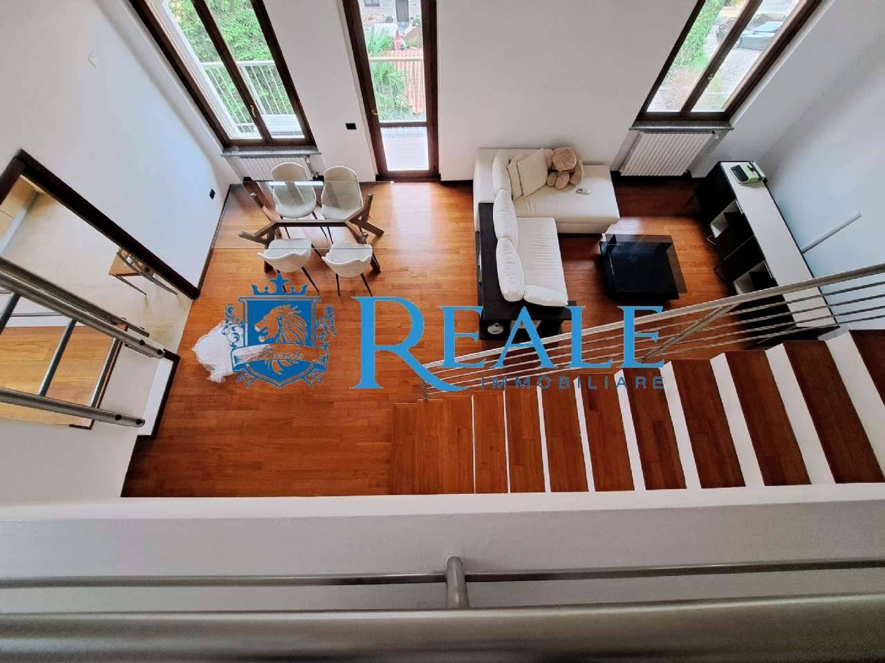Scala che conduce al piano soppalcato, che aumenta lo spazio disponibile creando nuove forme funzionali sfruttando al massimo l'altezza dell'appartamento. I grandi lucernari garantiscono l'ingresso della luce e aria naturale agli ambienti sottostanti. Il soppalco permette inoltre di godere di uno spazio in affaccio sull'ambiente sottostante a tutta altezza, qualcosa di estremamente raro e unico in una abitazione su due piani. Secondo bagno con doccia e termo arredo e grande spazio versatile utilizzabile come studio e/o palestra, area bimbi per ulteriori mq 75 accatastato come ripostiglio. L'appartamento viene venduto completamente arredato. L'arredo si trova in ottime condizioni conservative, utilizzato solo un anno. Riscaldamento autonomo, infissi doppio vetro, porta blindata. Completano questa splendida soluzione abitativa, una cantina e due box singoli.