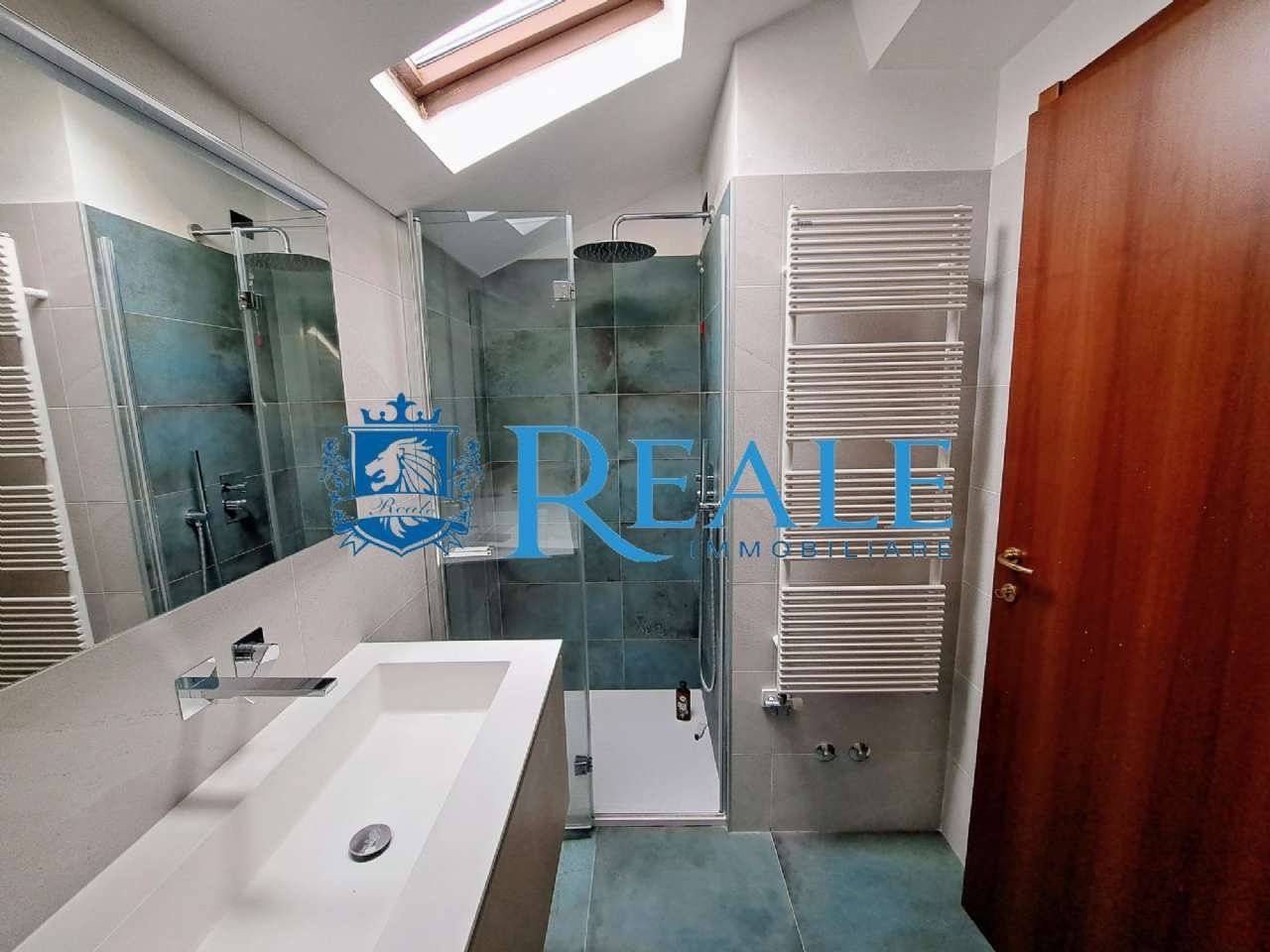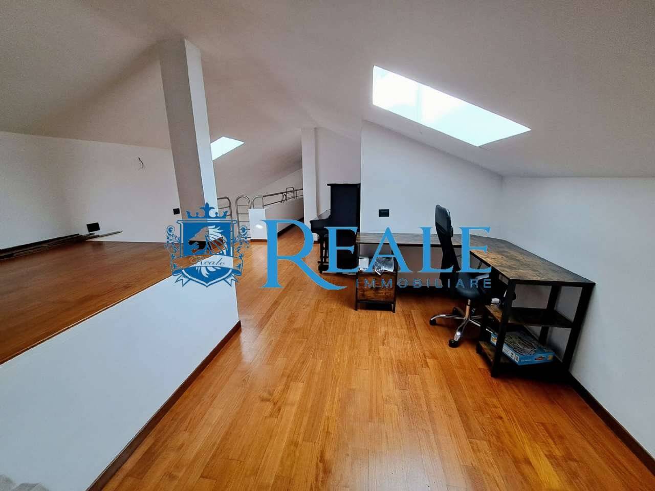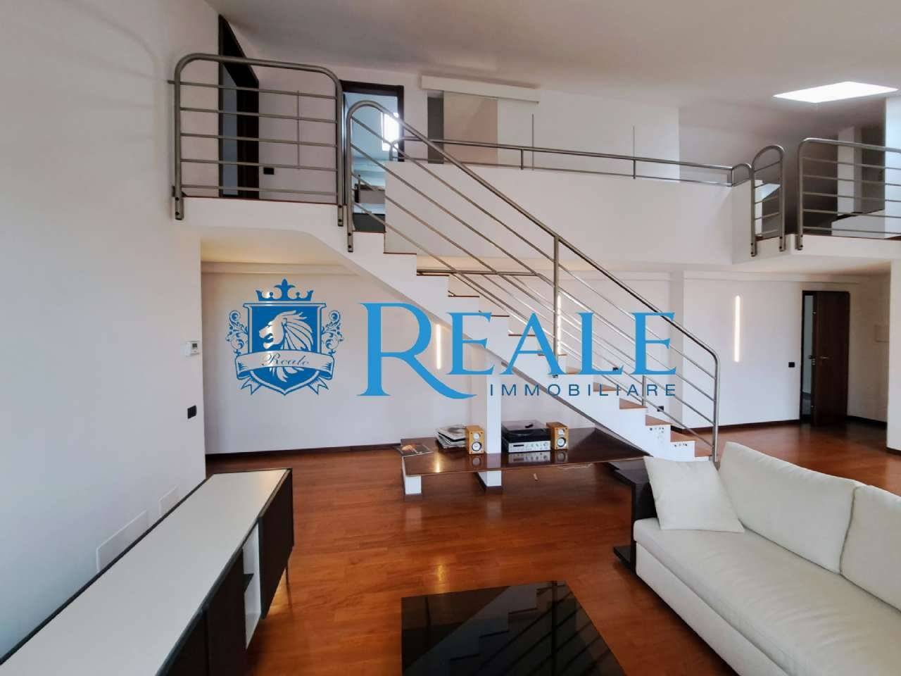 Scala che conduce al piano soppalcato, che aumenta lo spazio disponibile creando nuove forme funzionali sfruttando al massimo l'altezza dell'appartamento. I grandi lucernari garantiscono l'ingresso della luce e aria naturale agli ambienti sottostanti. Il soppalco permette inoltre di godere di uno spazio in affaccio sull'ambiente sottostante a tutta altezza, qualcosa di estremamente raro e unico in una abitazione su due piani. Secondo bagno con doccia e termo arredo e grande spazio versatile utilizzabile come studio e/o palestra, area bimbi per ulteriori mq 75 accatastato come ripostiglio. L'appartamento viene venduto completamente arredato. L'arredo si trova in ottime condizioni conservative, utilizzato solo un anno. Riscaldamento autonomo, infissi doppio vetro, porta blindata. Completano questa splendida soluzione abitativa, una cantina e due box singoli.