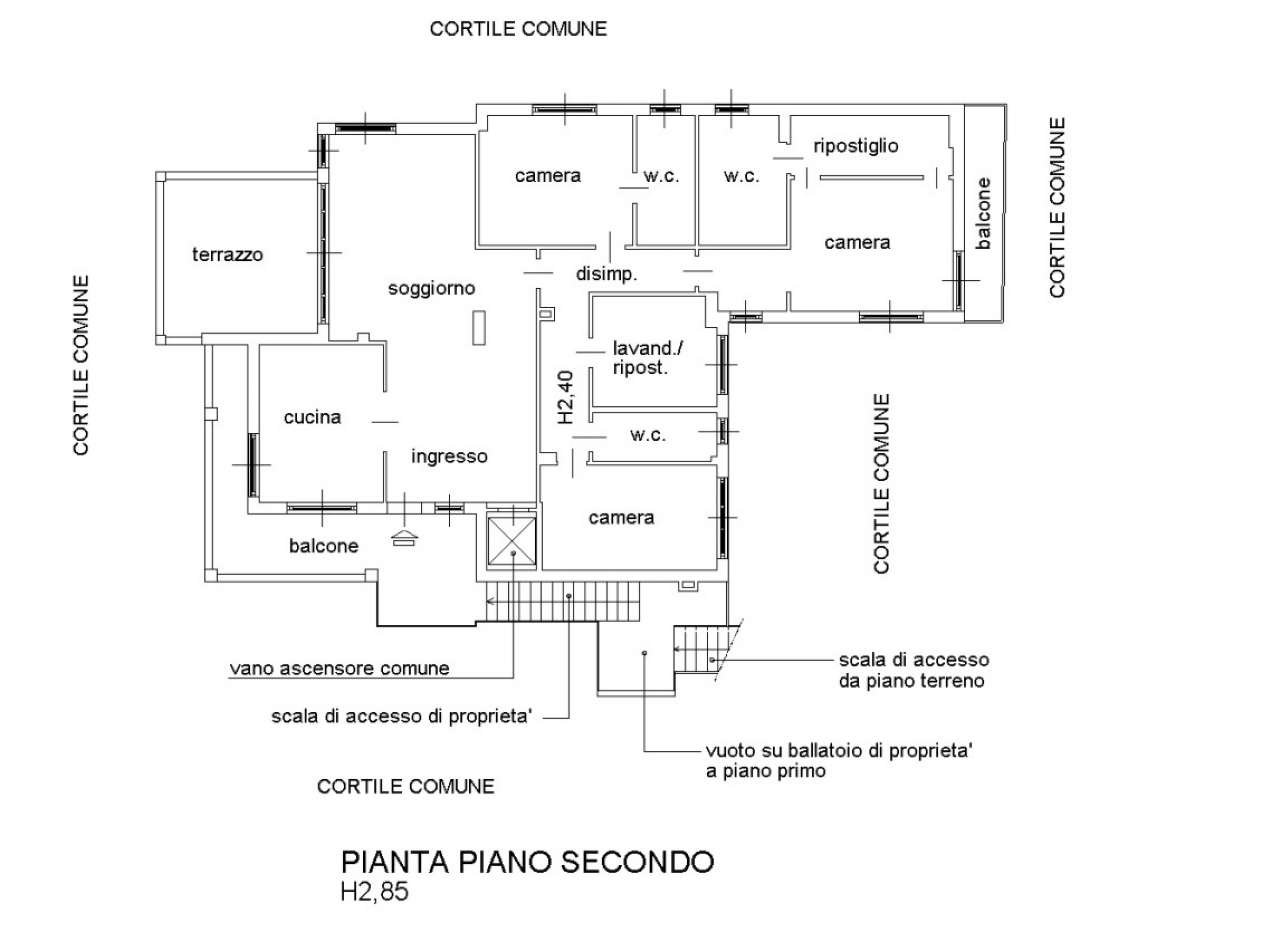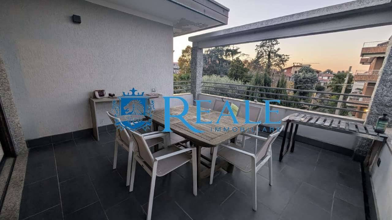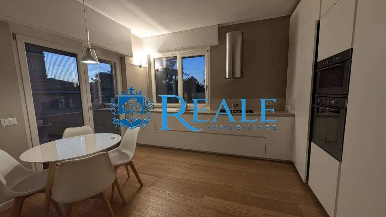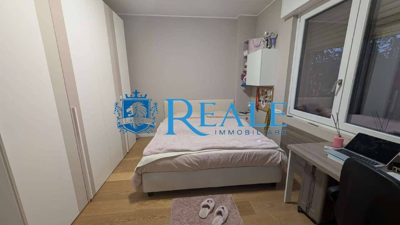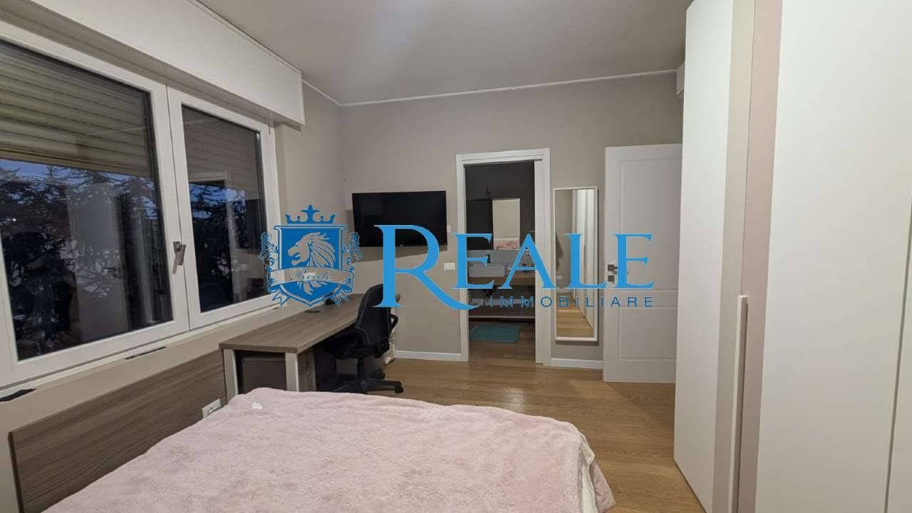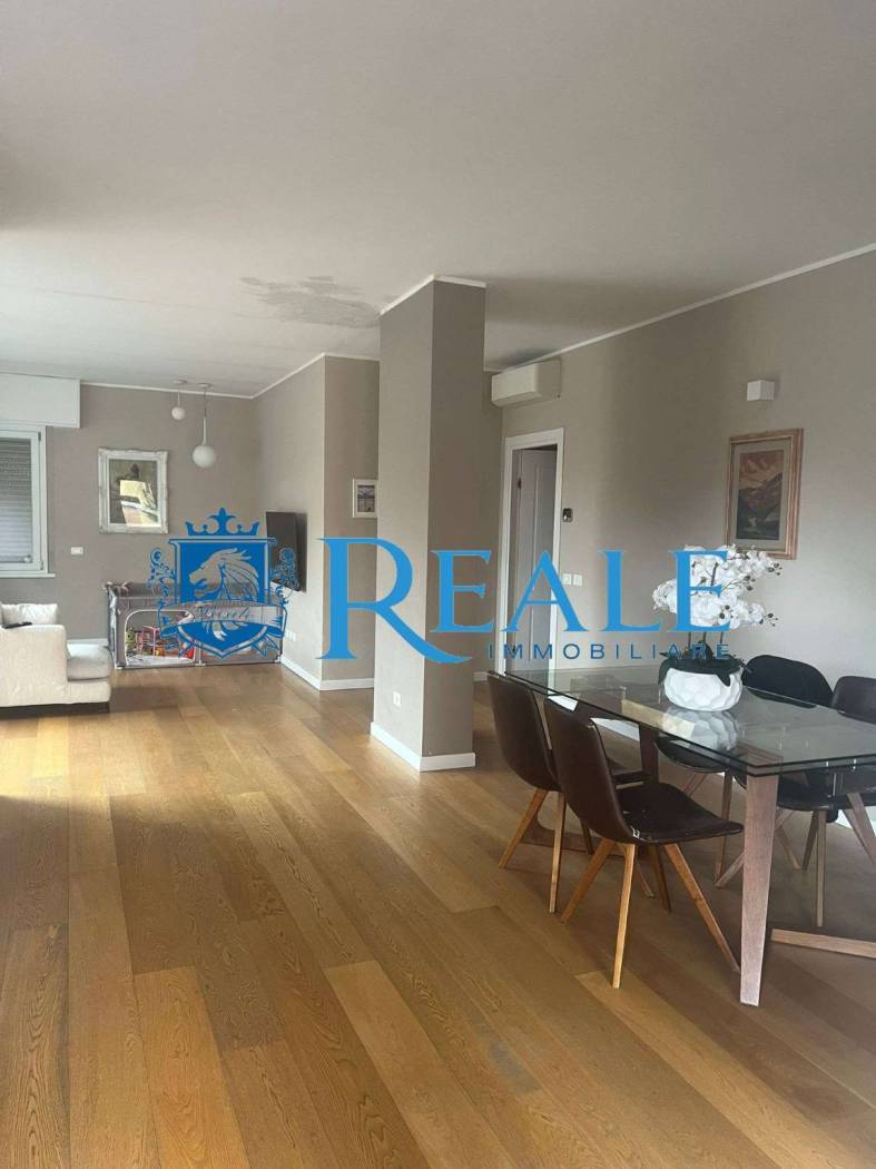 La soluzione abitativa ha una superficie di circa 180 mq, si trova al secondo e ultimo piano ed è stata completamente ristrutturata nel 2018 offrendo ambienti ampi e moderni pensati per il comfort quotidiano. L'ingresso, conduce direttamente alla zona giorno con soggiorno doppio e vetrata scorrevole a tutta parete con grande impatto visivo di apertura e continuità con l'esterno del terrazzo che crea un'atmosfera particolarmente luminosa. La cucina abitabile arredata a tutta altezza permette di ottimizzare gli spazio, perfetta per pranzi in famiglia e/o serate con amici per trascorrere momenti di convivialità e condivisione, anch'essa con doppia esposizione ed uscita sul balcone per garantisce un'ottimo riciclo dell'aria. La zona notte è composta da tre grandi camere due delle quali con bagno privato, tutte ben arredate mantenendo gli spazi ordinati e accoglienti. La suite padronale è completa di bagno en suite con doccia doppia e cabina armadio per un'ottima soluzione d'arredo. Ulteriori servizi finestrati e locale adibito a lavanderia ma utilizzabile come quarta camera. Parquet grossi listoni in tutto l'appartamento per un'estetica calda e naturale che valorizza gli ambienti. Porta blindata, infissi doppio vetro, tapparelle motorizzate e zanzariere nella zona giorno. Riscaldamento autonomo a pavimento con termostato in ogni stanza, aria condizionata ad inverter per un confort ottimale in ogni stagione. Impianto antintrusione completo di 4 telecamere esterne. Classe energetica E. L'appartamento e dotato di ascensore attualmente non in uso. Possibilità di mantenere l'arredo presente! A completare la soluzione una bella area esterna con accesso indipendente dal passo carraio, adibita a giardino di circa 150 mq con box doppio di 34 mq, posti auto coperti e grande deposito tutti censiti al catasto.